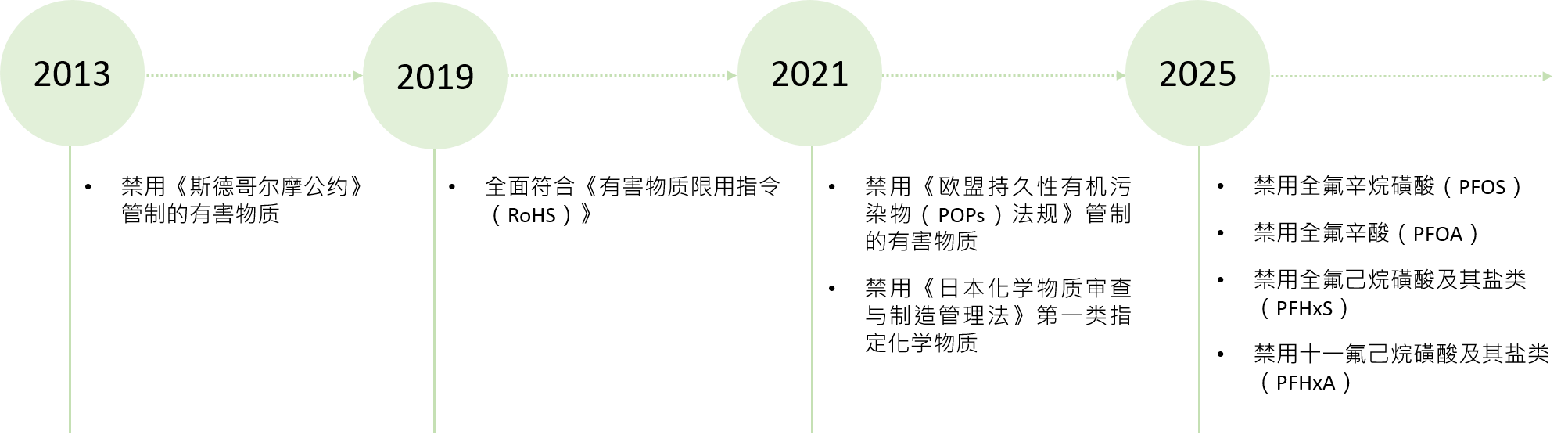 本公司依循IECQ QC 080000、最新国际法规趋势与客户要求,订立“绿色产品规格作业说明书”之ISO文件,明订公司产品中禁用/限用有害物质之一般规定(例如:RoHS与REACH),并将符合规定及无卤素之物料给予料号识别码,即为“绿色原物料”,以利研发团队于产品设计阶段,能选择符合各国相关法规及公司绿色产品规范之物料,减少或逐步淘汰产品中所含之有害物质,确保产品所使用的零件及包材都符合国际法规及客户有害物质规定。管控项目主要包含RoHS禁用物质10项、REACH SVHC 247项、REACH附录17以及其他法规之管制物质。2024年因客户关注全氟/多氟烷基物质(Per/Poly Fluoro Alkyl Substances, PFAS)议题,我们对供应链展开PFAS调查及管理,以因应国际法规拟于2026年全面禁用PFAS之趋势。