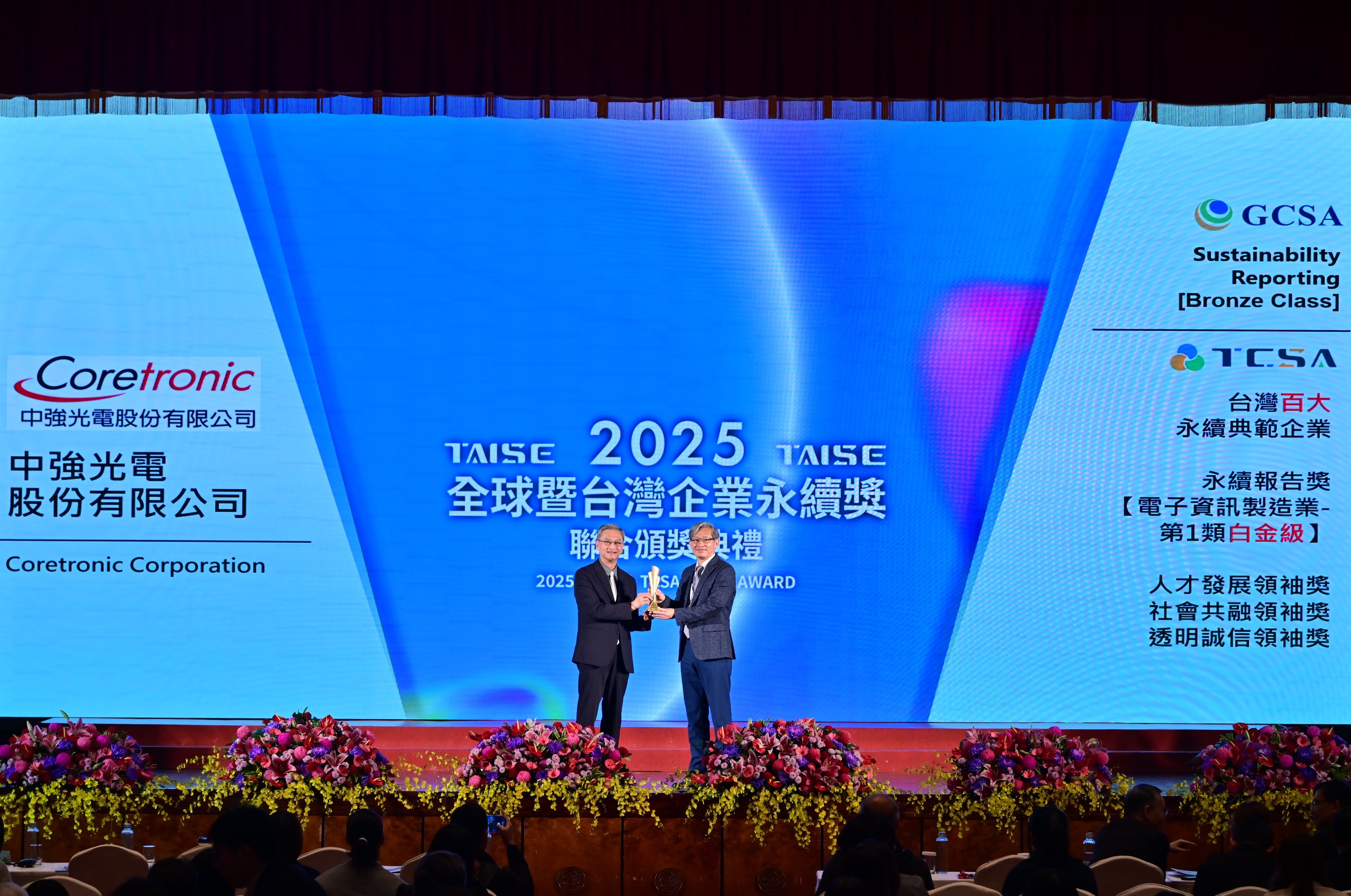 年度企业永续盛事“TCSA台湾企业永续奖”迈入第十八届,今年参赛家数达743家,较2024年增加121家,续创历史新高;第八届“GCSA全球企业永续奖”亦同步揭晓。在两大国内外顶尖永续竞赛中,上柜永续绩优公司中强光电(5371)以卓越永续实力脱颖而出,一举斩获六项大奖,展现全方位永续领航者的地位。在“TCSA台湾企业永续奖”中,中强光电一举囊括五项重要奖项,包括:永续报告“白金奖”(连两年)、“台湾百大永续典范企业奖”(连七年)、“透明诚信领袖奖”(连八年,六度蝉联第一名)、“社会共融领袖奖”(六度)、“人才发展领袖奖”(连三年)。同时,在“GCSA全球企业永续奖”中,二度获颁永续报告书“铜奖”,再添一项国际肯定。本次联合颁奖典礼于昨(26)日假圆山大饭店盛大举行,由中强光电财务长暨永续委员会委员何新斌代表公司上台受奖。
