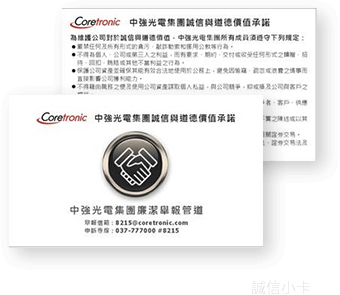 - 發放「誠信小卡」給台灣廠區全體同仁。