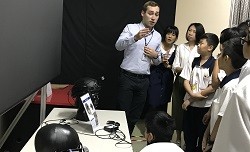 11/10中強光電邀請40位師生一同前來中強光電力行廠及竹南廠,進行高科技知識及尖端科技產品學習及體驗,例如讓同學們印象深刻、嘖嘖稱奇的數位魔鏡、觸控桌及環景式電競螢幕(節能產品事業群)、戴著影像產品事業群之VR智慧頭盔大玩虛擬賽車遊戲、以及利用138吋可捲式雷射超寬屏觸控系統及超短焦雷射投影機享受拼圖、作畫、彈鋼琴的樂趣,更可與同學們PK憤怒鳥及切水果遊戲。此外,亦安排師生們至科技生活館參觀六大產業展示館,藉此讓小尖兵們更進一步認識有「台灣矽谷」之稱的科學園區,也希望帶給同學們一些啟發。