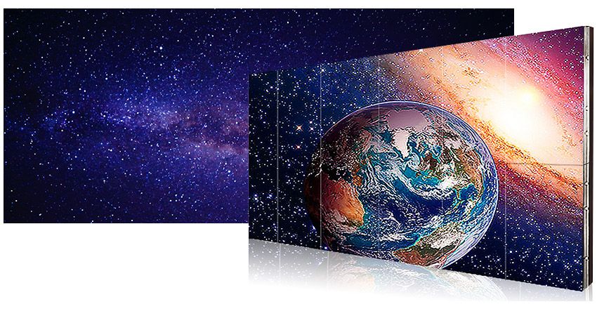 單台55吋顯示器擁有特殊光學無邊框設計,易於融入環境。其拼接而成的電視牆,解決傳統電視牆邊緣黑框視覺障礙之觀感。