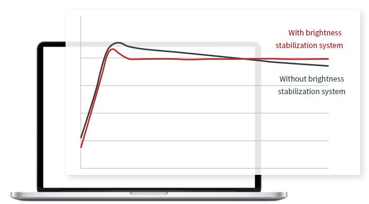 藉由高亮度背光模組光學及散熱系統設計,提升顯示器亮度,並確保顯示器壽命與可靠性。